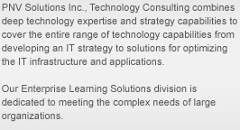 PNV Solutions Inc., offers a more complete staffing solution for today's competitive business environment. At PNV Solutions Inc., we help executives work together by offering solutions that bridge the interests of the entire organization. Our industry experience, broad capabilities and deep alliances mean we can help you make the most of opportunities and avoid unnecessary risk. Our promise is simple. We help clients create more value.